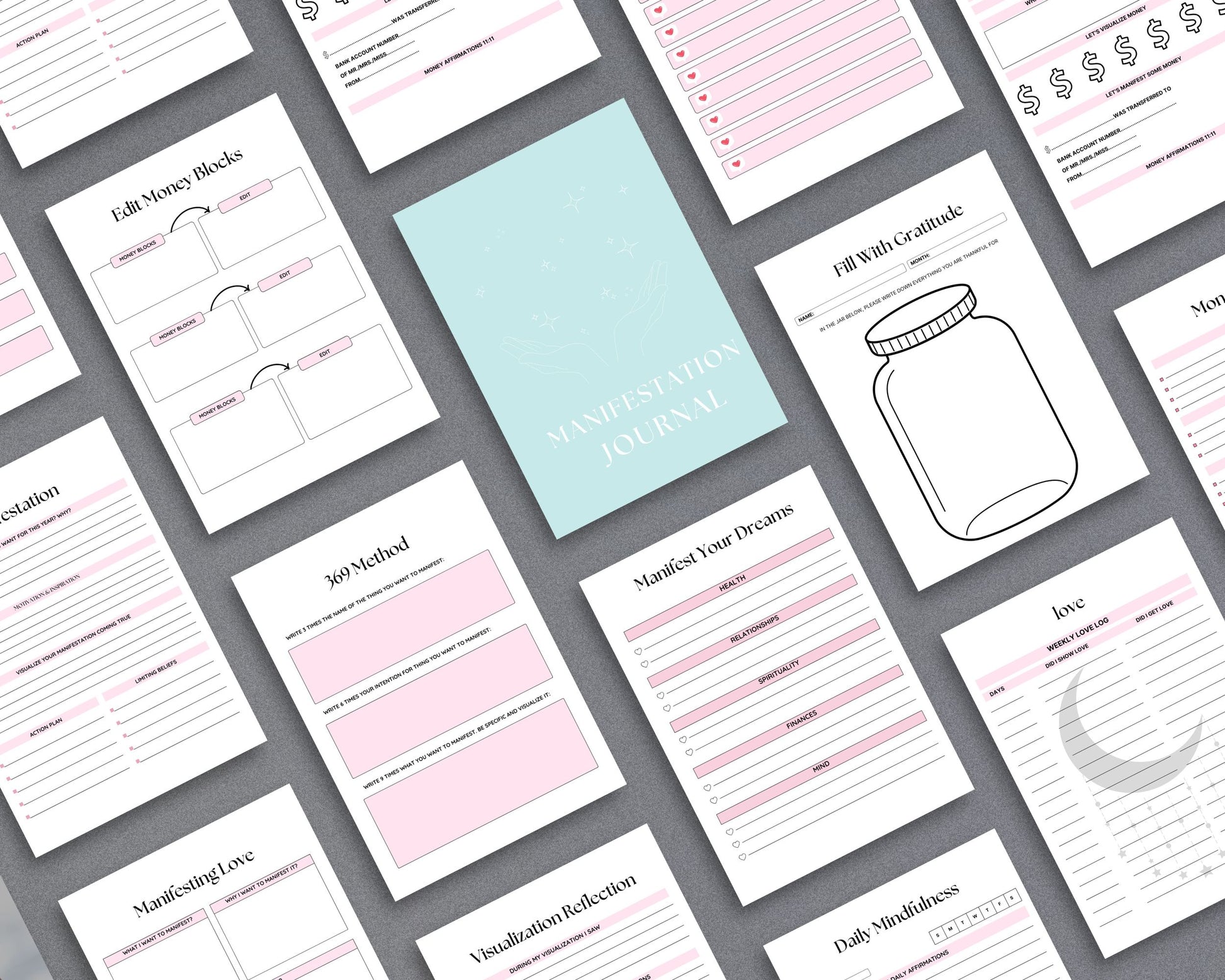 Ready to turn your dreams into reality? The Manifestation Journal is a printable law of attraction workbook designed to help you visualize, set goals, overcome limiting beliefs, and create the life you desire.