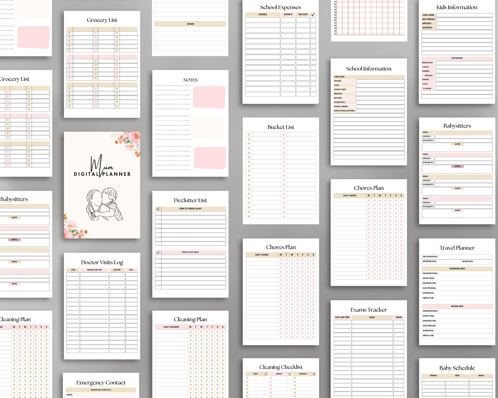 This printable PDF planner includes daily schedules, chore charts, meal planning, school activity logs, cleaning checklists, and self-care pages, making it the perfect tool for busy mums who want to stay in control.