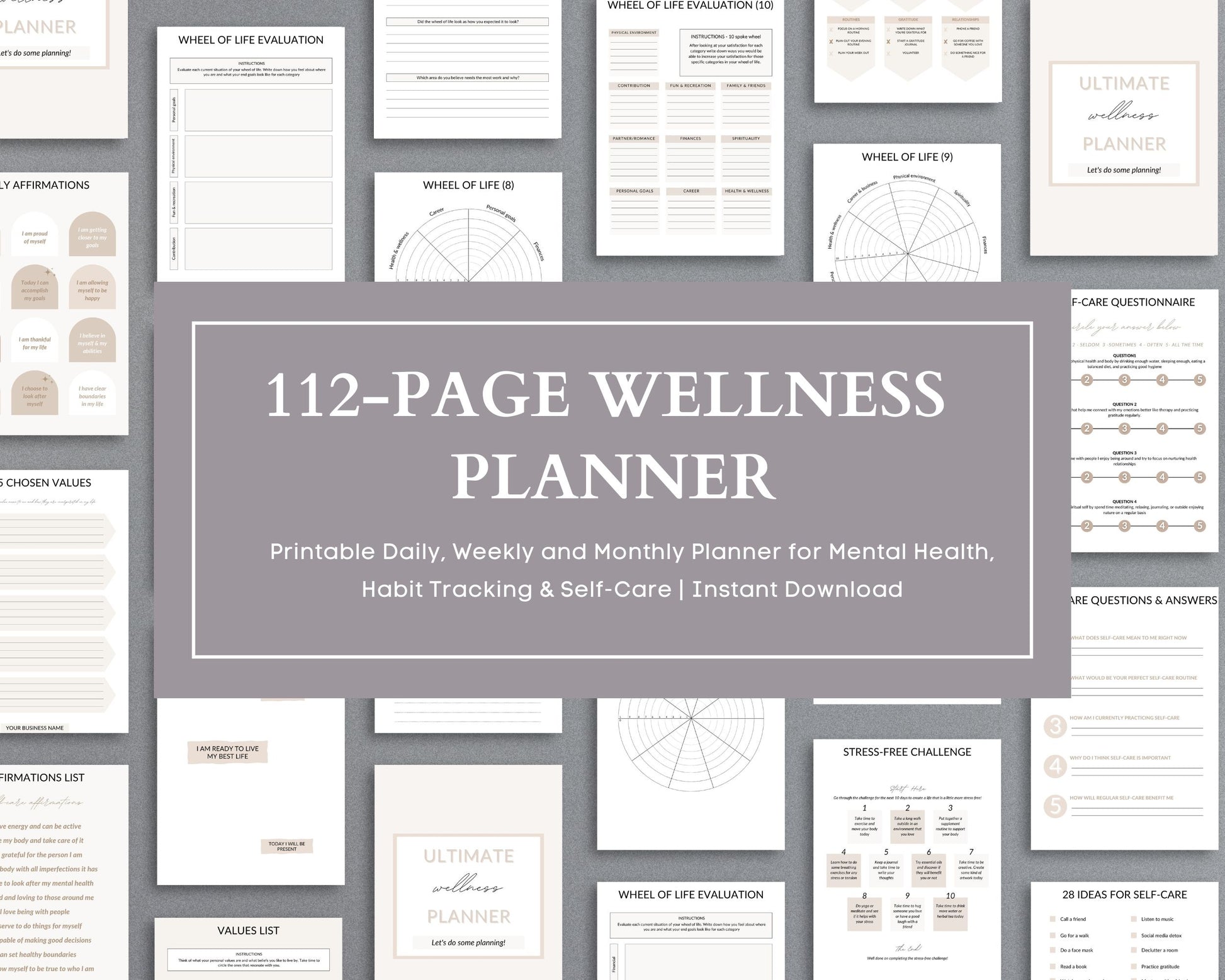 - 1 x Wellness Planner (Printable PDF) – Instant Download