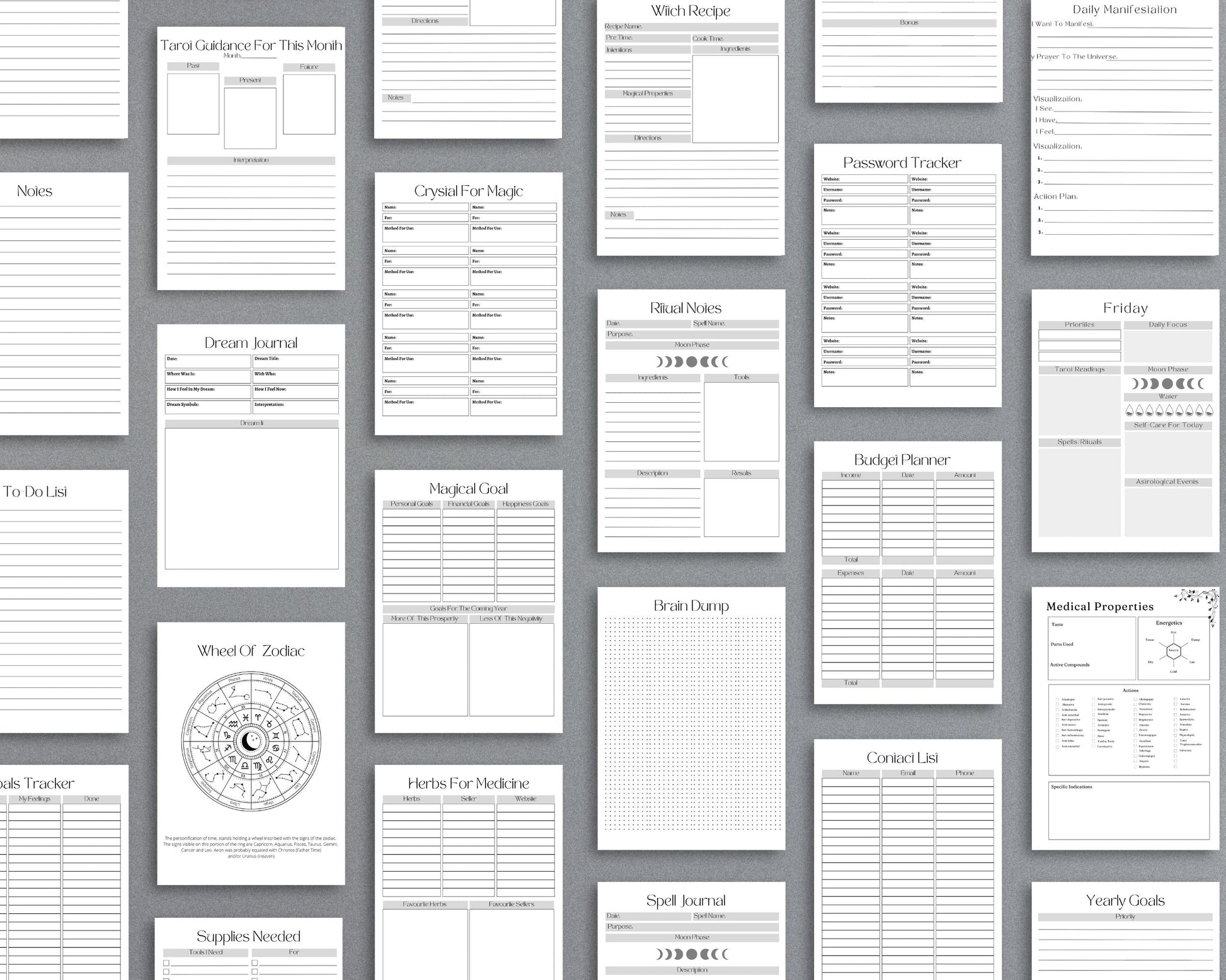 - Guided spell journaling, tarot tracking, manifestation pages & moon phase planners