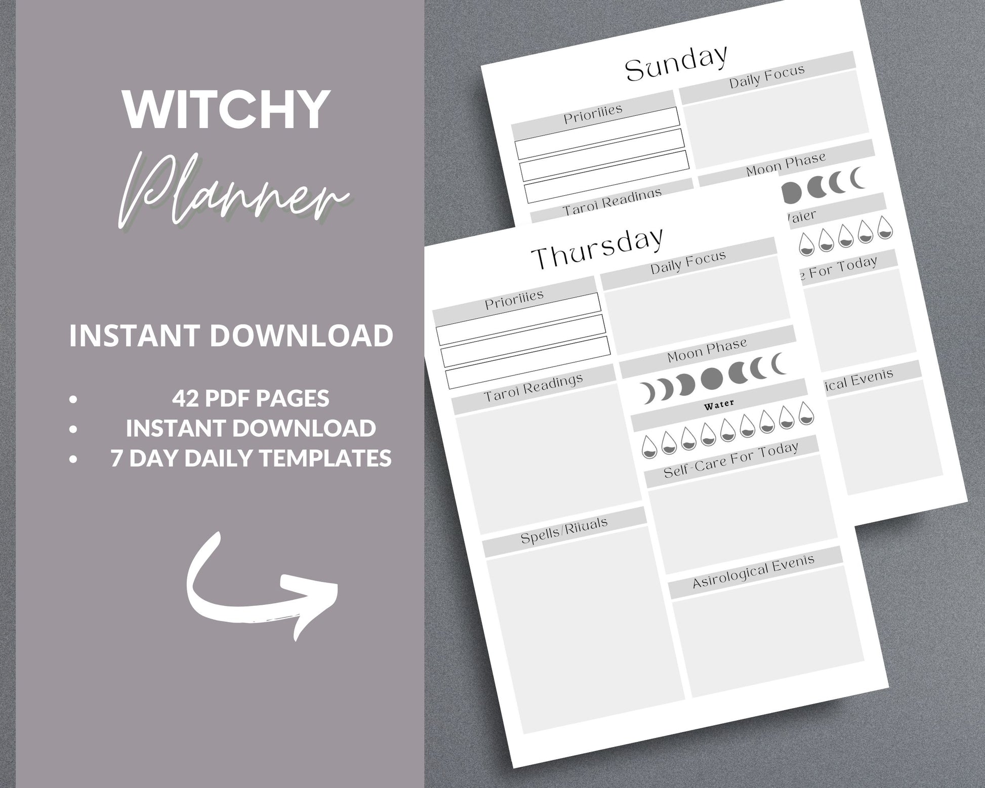 Witchy Planner – Track Rituals, Moon Phases & Tarot Readings | Printable PDF